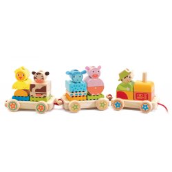 Combinant à la fois un train et des animaux de la ferme, ce jouet à tirer va plaire à coup sûr aux petits enfants. Les blocs peuvent être combinés de différentes manières de façon à jouer avec les formes, les couleurs, les animaux, ...