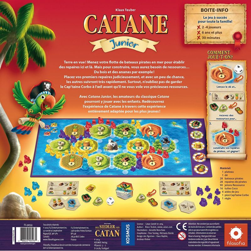 Catane junior est un fabuleux jeu de société pour les jeunes enfants et un très bon jeu d'initiation aux jeux de stratégie plus complexes et en particulier au jeu "Les colons de Catane". Vous retrouverez d'ailleurs la mécanique de base de ce jeu.